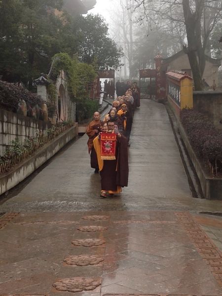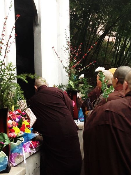 17日上午,在东方山弘化禅寺第七十三代传人正慈方丈的组织安排下,全体僧众及居士信众100多人肃立常乐法师亲笔书写的“西方三圣”牌匾前礼佛颂经,承接恩泽。追思常乐法师一生慈悲为怀,普渡众生;结缘四方,修殿供佛;弘扬佛法,功德千秋。
