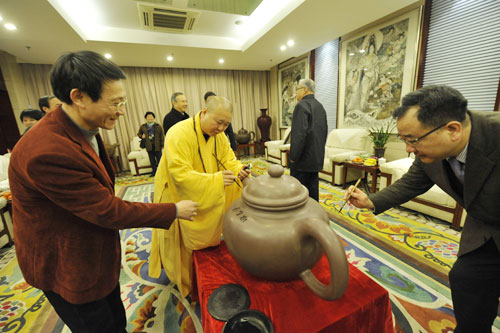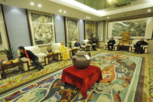 玉佛寺今天的庆典活动,内容丰富多样,除了上午在大雄宝殿举行的、由来自海内外的诸山长老、玉佛禅寺的百余名法师、数百位护法居士参加的“纪念上海玉佛禅寺建寺130周年祈福法会”外,下午还在方丈室举行了“回顾与展望——纪念上海玉佛禅寺建寺130周年座谈会”,有关部门领导、海内外诸山长老、学者代表、老干部代表、居士代表近百人应邀出席,深情回顾了与玉佛禅寺的殊胜因缘,对玉佛禅寺今天所展现的都市佛教崭新气象和社会影响表达了由衷的赞叹,对于玉佛禅寺未来的发展寄予了厚望。