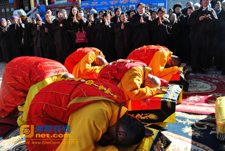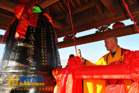 2012年12月12日上午,青海大通老爷山感应寺隆重举行“感应寺仿唐铜钟悬挂钟楼祈福法会”。