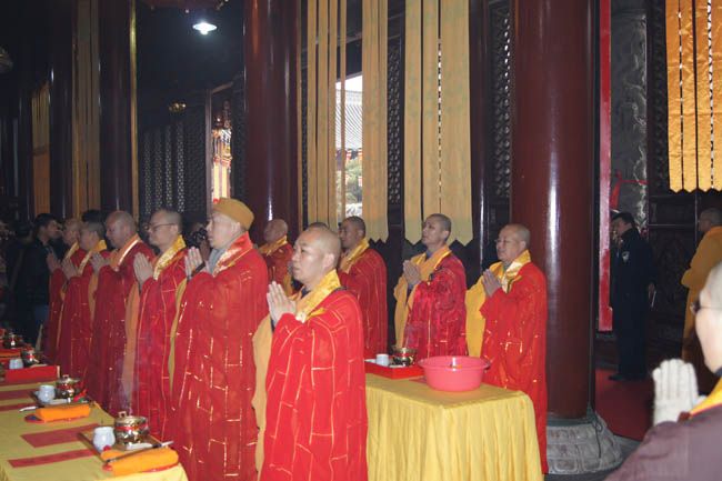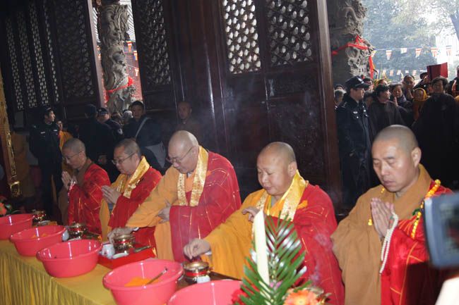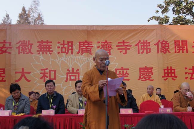 十点左右诸山长老、领导以及贵宾前往主席台就坐,庆典开始。正慈法师宣读中国佛教协会发来的贺电,智文法师代表安徽省佛教协会讲话,最后仁煜法师致辞。十一时许庆典法会圆满结束。