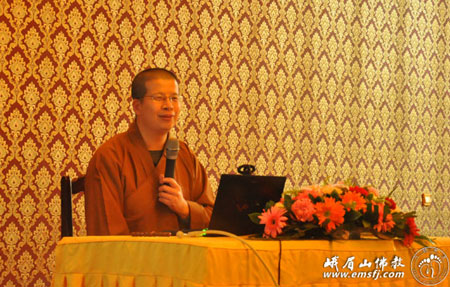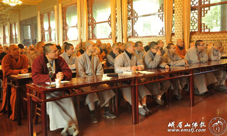 2012年12月11日下午,峨眉山佛学院举办主题为《中国佛教的2000年、60年与30年》的专题讲座,清华大学哲学系副教授、硕士生导师、峨眉山佛学院研究生导师圣凯法师应邀做主讲,峨眉山佛学院全院师生到场聆听。讲座由峨眉山佛学院副院长满霖法师主持。