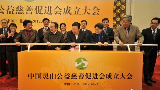 经过3年的筹备,以江苏省无锡市“灵山人文小镇”冠名的中国灵山公益慈善促进会成立大会,于2012年12月22日在人民大会堂举行。全国政协副主席孙家正;第十届全国人大常委会副委员长何鲁丽;第九、第十届全国人大常委会副委员长许嘉璐;第九届全国人大常委会副委员长蒋正华;第十届全国人大常委会副委员长顾秀莲;江苏省委常委、无锡市委书记黄莉新;国家宗教局副局长蒋坚永;博鳌亚洲论坛原秘书长龙永图;凤凰卫视董事局主席兼行政总裁刘长乐;中国社科院社会政策研究中心副主任、研究员杨团;中国佛教协会副会长学诚法师;中国佛教协会咨议委员会副主席、江苏省佛教名誉会长、无锡祥符寺方丈无相长老等有关部分领导及各界人士共100多人出席大会。
