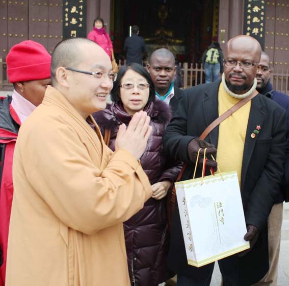2012年12月16日,南非共产党中央委员、国民议会议员威廉姆斯先生一行在北京中联部协调局参赞李力清、陕西省外事办任冰副处长等陪同下前往陕西省法门寺参访,受到法门寺监院贤空法师和知客宽阳法师、慧超法师的热情接待。