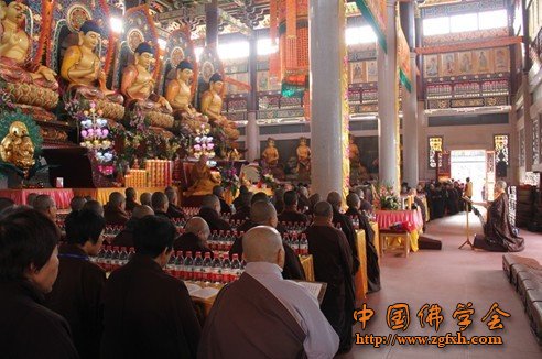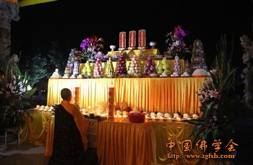 当天佛光普照,万里晴空。早上四点,千佛塔寺住持明慧法师带领四众弟子,以鲜花,水果,粮食供天,上午8点,大悲法会开始,由觉明大和尚主法。