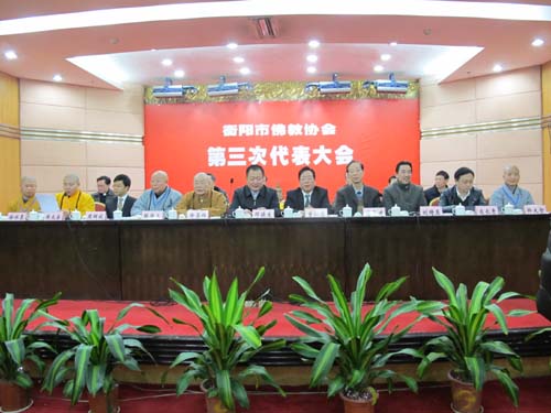 1月9日,衡阳市佛教协会第三次代表大会在雁城宾馆隆重召开。来自全市佛教界68名代表以及18名特邀代表参加会议。省委统战部副部长邓焕生、副巡视员谢德胜,省宗教局副巡视员唐子建,中国佛教协会副会长、省佛教协会会长圣辉大和尚,衡阳市委常委、组织部长、统战部长曾仁忠,市人大副主任刘琦玉,市政府副市长周辉斌,市政协副主席肖长贵等领导出席。