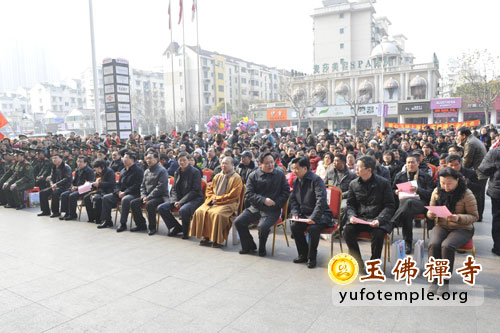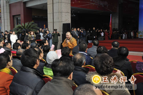 2013年1月12日下午,上海市第十九届“蓝天下的至爱”慈善活动在全市范围内铺开。普陀区分会场“阳光慈善、幸福公益——大型慈善募捐活动”在中环百联举行。上海市慈善基金会常务副理事长施德荣,中国佛教协会副会长、上海市佛教协会会长、玉佛禅寺方丈觉醒大和尚,普陀区政协主席钱城乡,普陀区委副书记程向民,普陀区府副区长王鹏等领导及社会爱心团体代表数百人出席。活动过程中,觉醒大和尚代表玉佛禅寺向上海市慈善基金会捐赠人民币100万元,用于普陀区的慈善公益事业。