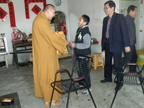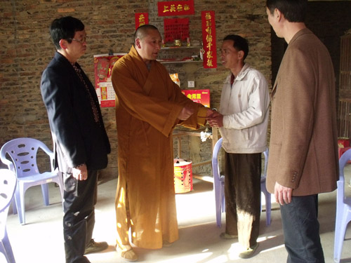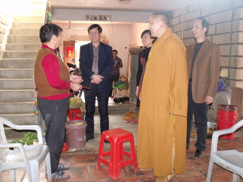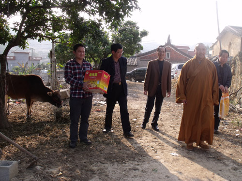 2013年1月30日下午,同安区区委统战部蔡志强副部长、同安区民宗局郭斌超局长、梵天寺住持仁慈法师一行到同安区汀溪镇、祥平街道慰问孤寡老人及困难户,为他们送去了大米、油和2700元的慰问金。祝愿他们过一个欢乐、安定、祥和的春节。(图文:梵天寺)