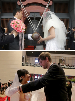 男女双方都是马来西亚人,目前担任星洲日报记者的黄建荣则表示,一开始从没想过在佛前见证下结婚,对各宗教略有涉猎的他,大学就参加禅修与佛学营,能够与心爱的人在台湾参加这么具有意义的婚礼,他说:“这将是人生中最美好的回忆。”而他的另一半彭浩晴则分享,因姐姐在法鼓山出家,去年四月初次参访法鼓山,对于充满人文与环保之美的佛教建筑相当喜爱,今天恰好是父母结婚39周年纪念日,她也以今日完婚做为给父母的礼物。