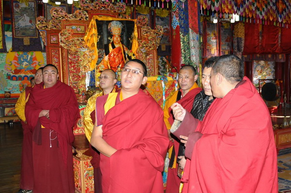 木里香根活佛在静坐禅院金刚上师银巴喇嘛陪同下参观