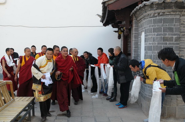 木里香根活佛来到位于丽江古城的白马龙潭寺参观