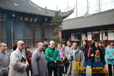 2013年1月24日至25日,河南佛教学院副院长兼教务长隆藏法师带领全体师生参访四川成都文殊院,文殊院方丈宗性法师、首座智海法师亲切接待。