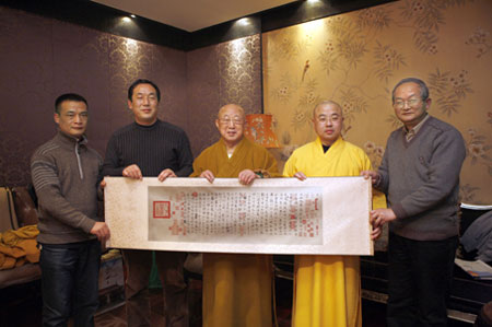 黄文刚局长向松纯长老赠送真丝织品《王羲之·兰亭集序》
