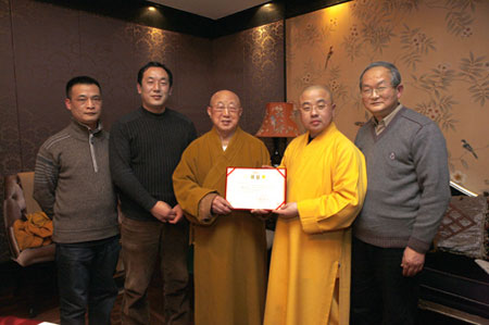 松纯长老接受绍兴市佛教协会书法作品收藏证书