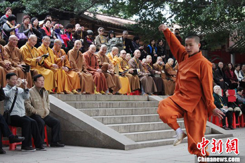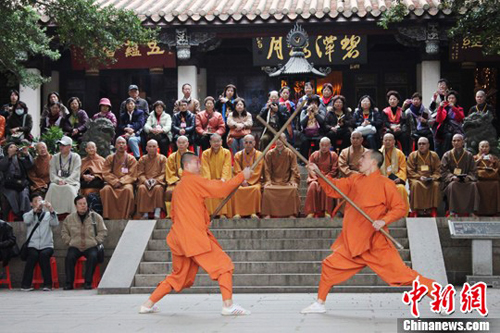 2013年1月8日上午,由台湾中国佛教会副理事长心茂法师,中国佛教会主任委员、慈法禅寺住持释净耀等百余名台湾南部道场的寺庙住持及信众到福建泉州南少林寺参观交流,并观看了精彩的少林武术表演。