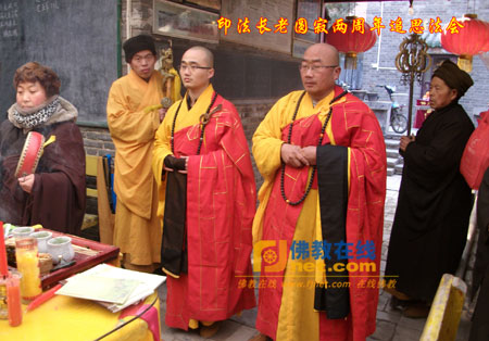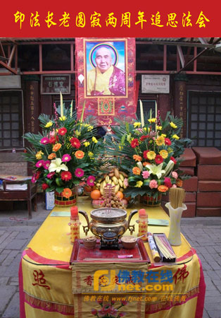 2013年1月2日上午,河南博爱县青莲石佛寺隆重举行“印法老和尚圆寂两周年追思法会”。青莲石佛寺住持演祥法师、武陟县观音寺住持妙神法师等带领诸山长老、护法居士及常住僧众共计三百余人持香诵经,绕塔追思。