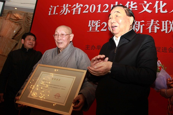 明学长老被评为“江苏2012年度十大中华文化人物”
