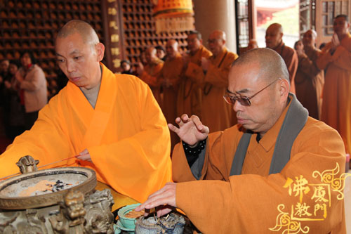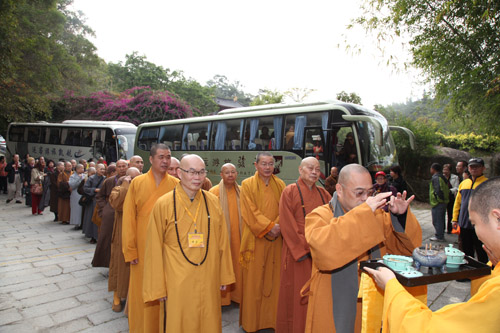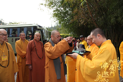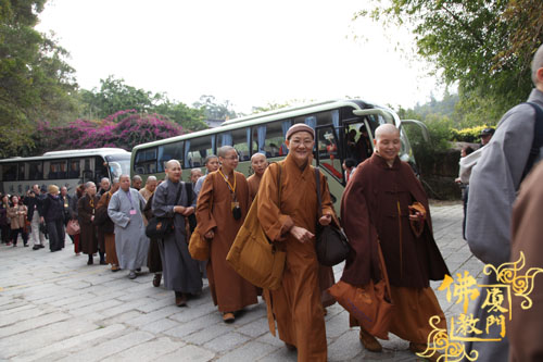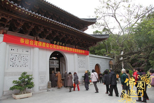 1月10日报道:今天上午,台湾中国佛教会副理事长心茂大和尚、台北佛教会理事明空法师、金门县佛教会前任理事长性海法师、现任理事长逹千法师、台湾普贤讲堂住持净耀法师及台湾大正法师、显云法师等一行80余人到厦门太平岩寺、南普陀寺参访交流。