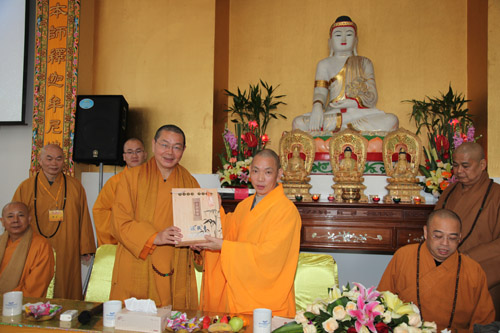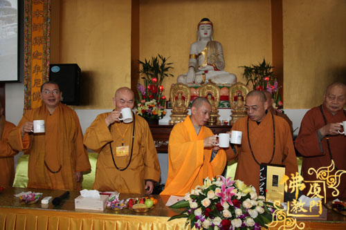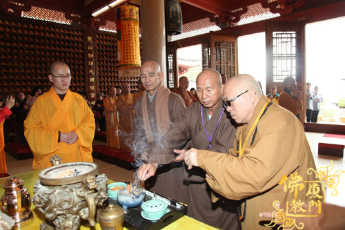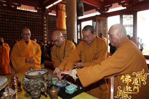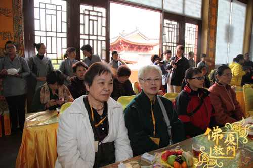 10点30分,台湾参访团一行到南普陀寺参观,市佛协常务副会长定恒法师,副会长法云法师、副会长兼秘书长净心法师、南普陀寺大知客德煌法师、知客戒舟法师、圣醒法师等热情接待了台湾贵客。参观后,在南普陀寺普照楼用餐。