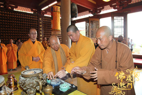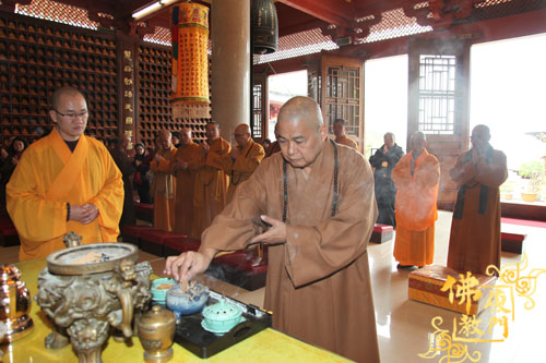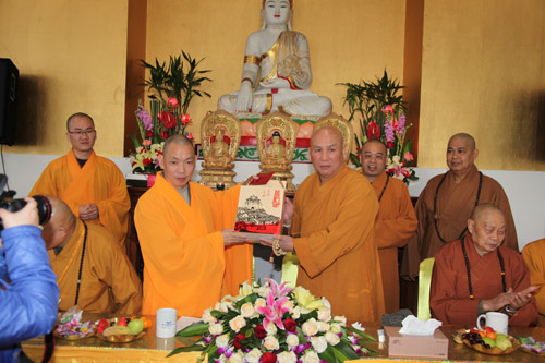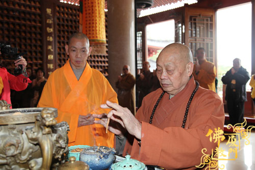 上午9点,市佛协副秘书长、太平岩寺住持世澄法师在植物园门口热情迎接心茂大和尚一行,心茂大和尚在太平岩寺山门口拈香后,在世澄法师的陪同下到大雄宝殿礼佛。随后,在太平岩寺讲堂座谈交流。