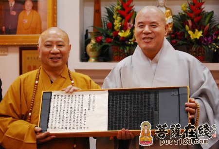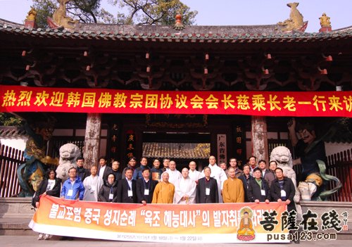 2013年1月18日上午,韩国佛教宗团协议会会长慈乘长老一行来访广东广州光孝寺。