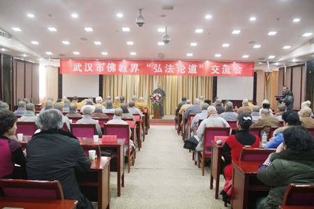 由武汉佛教协会筹备了一年之久的武汉佛教界“弘法论道”交流会今日在归元禅寺举行,武汉市统战部、武汉市民宗委、武汉市佛协、武汉市各大寺院代表、居士代表等百余人出席了本次“弘法论道”交流会。