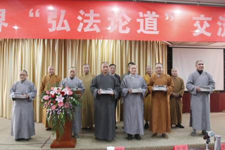 演讲结束后,隆醒大和尚对六位辩手的演讲进行了总结点评,他对六位辩手的表现给予了高度的肯定,并勉励辩手们要再接再励,在今后的修行中勇猛精进。随后,六位辩手还上台领取了本次交流会的奖品。