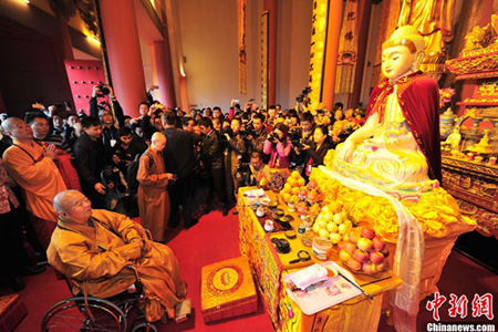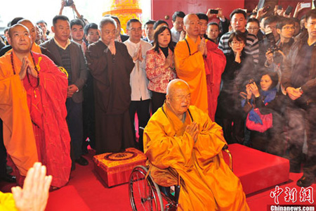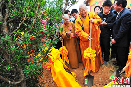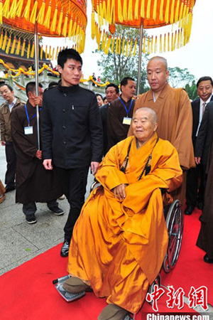 海南博鳌禅寺举行两岸和平祈福法会 星云大师为玉佛开光