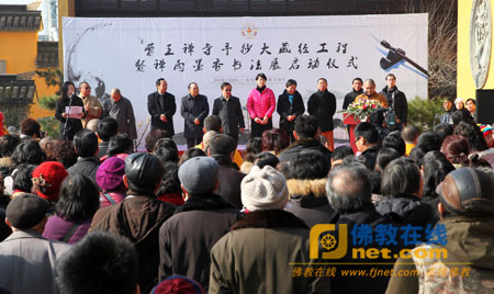 上午10时半,仪式正式开始。曹王禅寺住持曙红法师代表曹王禅寺全体僧众致欢迎词,叙述了曹王禅寺800多年的历史变迁,以及十年重建的历程。特别着重介绍了正在进行中的手抄《大藏经》的宏伟工程——选择1250人在宣纸上用正楷或隶书、魏碑书写佛典,历时十年完工。其次,已推出“慧炬文库”一、二两辑,共七册,约70余万字,并将续出至50册,系统介绍佛教的教义,以及与文学、历史、艺术等方面的关系。第三,针对时下年轻僧众唱念不佳、佛教仪轨面临传承后继乏人的严峻形势,曹王禅寺决定分卷修订出版“佛教仪轨大全”,使佛教仪式万古长新,滋润众生的心田。