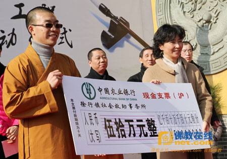 曹王禅寺向区内徐行镇社会救助事务所捐款50万元