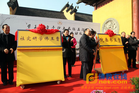 曙红法师与领导、嘉宾一起为曹王书画院、曹王佛学社的揭牌仪式