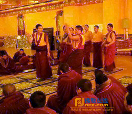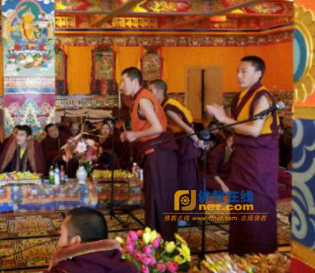 今年的考试极其严格,六位堪布(佛学教授)严格监督,参加辩经考试的学僧所辩法的合理性、正确性,必须要用教证和理证来证明。当第一天第二节的辩经辩到初地菩萨相续中的无障道是否正相般若时,堪布提出了既精彩又深奥的问题,学僧进行了激烈的辩论,将全场辩经的氛围推向高潮。