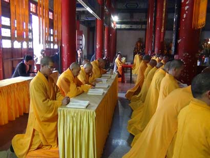 众僧人带领信众共同念诵药师忏(图片来源:黄梅五祖寺)