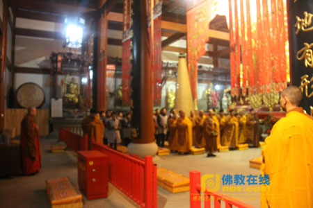 据悉,23日(农历正月十四)晚,正值同觉寺一年一度请职活动,数十位来自上海、昆山以及当地的信众一起观礼了寺院请职活动。