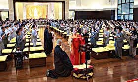 禅修欲上路,必须调身、调心、调息。主七和尚见灯法师为大众开示静坐要领,并提示,每个人都有真生命,都有自己真正安身立命之处。这个真生命就是人人本具的佛性。只要去除妄想执著,即同如来,便能成就圆满如意的人生。