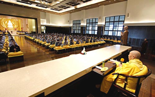 2月1日下午4时,中台禅寺导师惟觉长老于禅七开示中指出,现代人都知道身体要检查、保养、美化,却忽略了心的保养与净化。佛法以人为根本,人以心为根本,心以觉悟为根本。一个人在世界上,如果只有物质生活,没有精神生活、心灵世界,将会充满烦恼、枯燥、无聊,失去目标与希望,因此佛法以心为根本。目前全世界都注重环保,佛法是心灵环保,心定、心净、心明、心安,才是最重要的。能够做到净化自心,并能以大慈悲心、大智慧心处理生活中所面对的事情,则家庭、学业、事业、修行,都能有所提升。