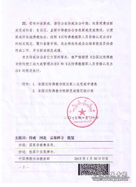 4、受戒人员,以本省寺院常住沙弥为主。外省要求受戒人员,必须由所在地省佛教协会征得传戒省佛教协会的同意,开具证明,介绍前往受戒。