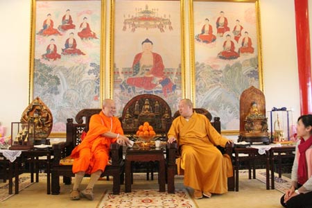 2013年2月23日下午,泰国副僧王帕波玛师提长老及曼谷航空公司总裁巴萨特·巴萨通欧索先生夫妇一行到访深圳弘法寺,受到中国佛教协会副会长、深圳弘法寺方丈印顺法师的热情接待。