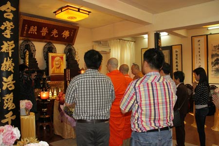 随后,副僧王一行在印顺法师的陪同下,参拜本焕长老舍利及法像,并于长老像前诵经祈福。