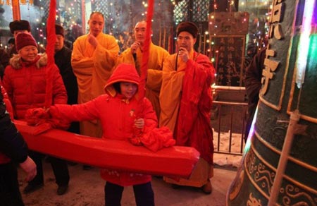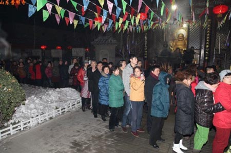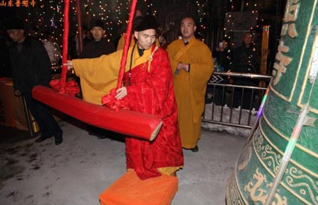 山东省淄博市淄川区普照寺举行新年撞钟仪式