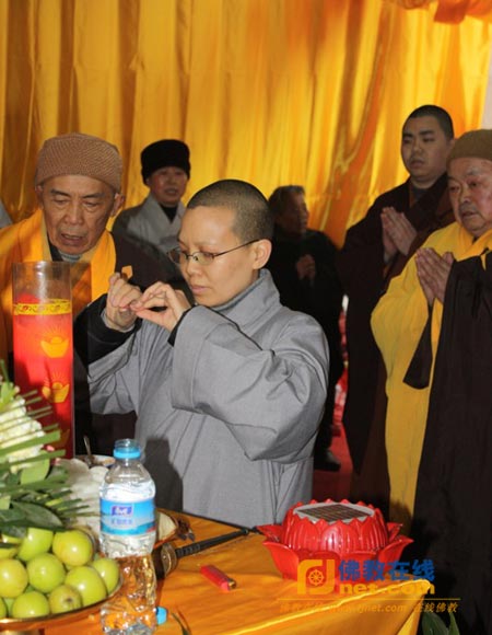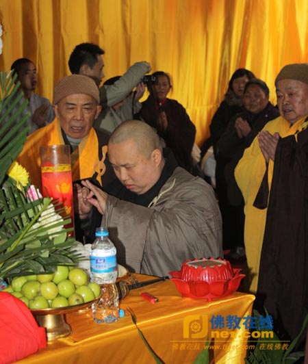 双桂堂首座身志法师(图中)领众捻香顶礼