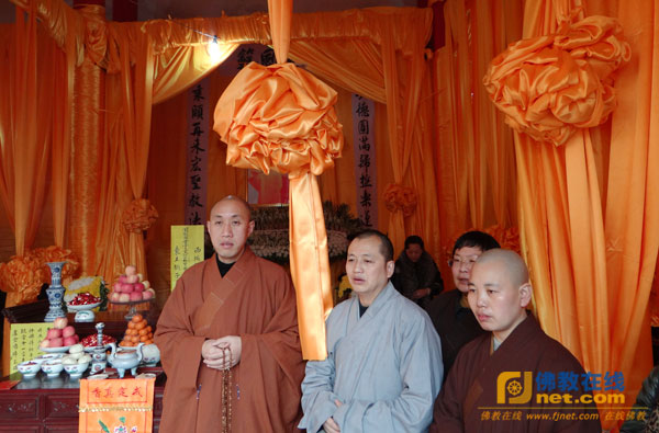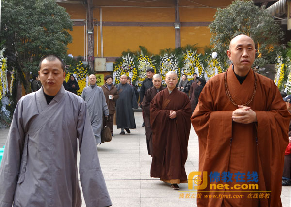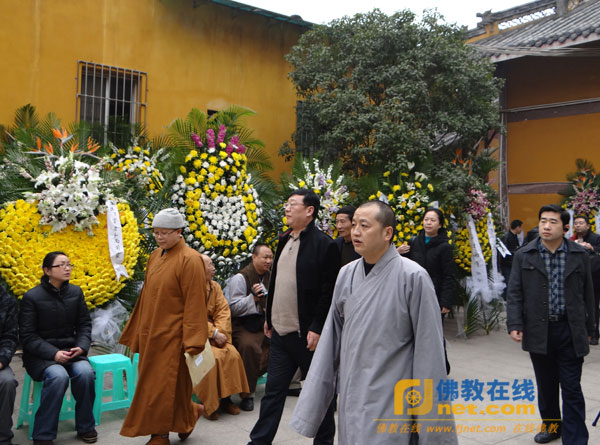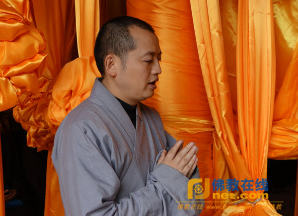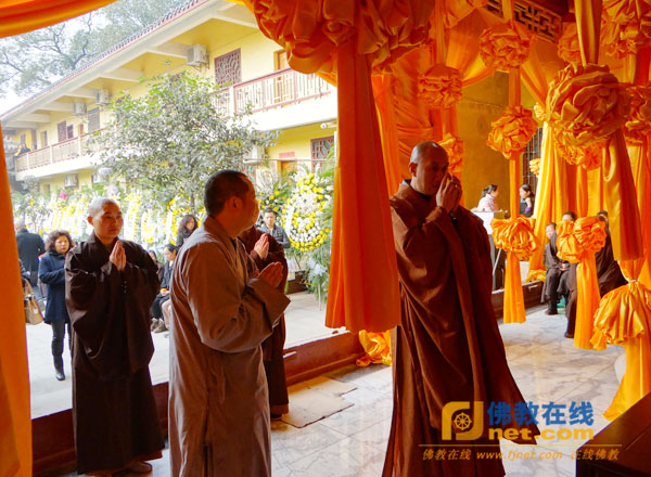 华岩寺方丈道坚法师赶到涂山寺来悼念惟贤长老。(摄影:正易)