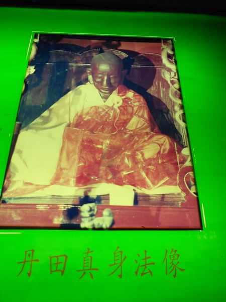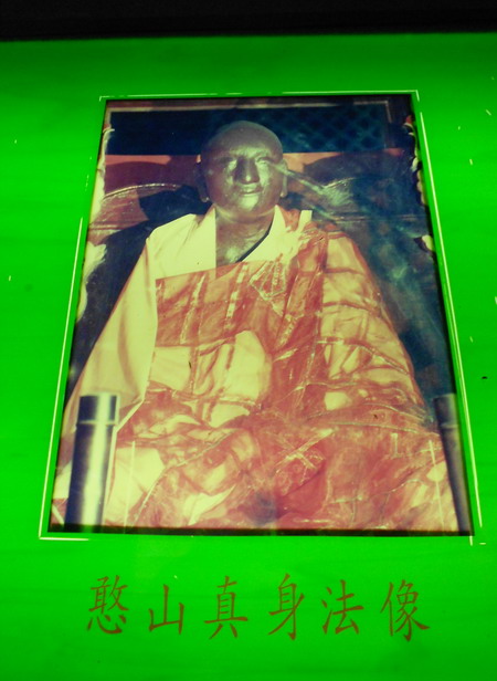 供奉在六祖大师左右侧的憨山大师和丹田大师肉身像