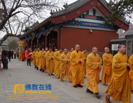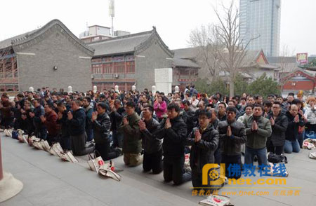 2013年3月23日,天津市大悲禅院隆重举行2013年度第一届皈依法会,一千一百余位在家信众受持了三皈。