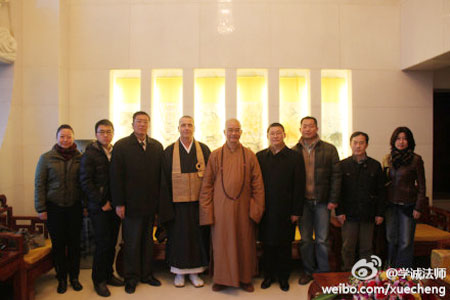 2013年3月23日下午,世界佛教徒联谊会(WFB)副主席道轮玄峰法师与中国驻哈萨克斯坦首都阿拉木图副总领事罗世雄先生一行五人访问北京龙泉寺,受到学诚法师的亲切会见,双方就佛教国际交流等进行了探讨。