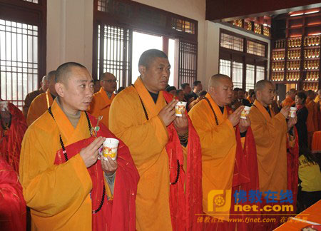 中国佛教协会咨议委员会副主席、江苏省佛教协会名誉会长、苏州灵岩山寺方丈明学长老,中国佛教协会咨议委员会副主席、江苏省佛教协会名誉会长、无锡灵山祥符寺方丈无相长老,中国佛教协会副会长、江苏省佛教协会会长心澄法师,江苏省佛教协会顾问、包山寺法主贯澈长老,宜兴市佛教协会会长、宜兴南岳寺方丈宏仁长老,江苏省佛教协会副会长兼秘书长秋爽法师,江苏省佛教协会副会长能开法师、能修法师、普仁法师、俊才法师、昌鉴法师、曙正法师、莲华法师、传义法师、廓尘法师,江苏省佛教协会副秘书长觉智法师、能超法师、法空法师,山东省佛教协会会长仁昌法师,广西佛教协会副会长镛如法师,厦门市佛教协会副秘书长仁慈法师,台湾佛光山心培法师,台湾世界佛教青年联谊会会长莲海法师,台湾中华五眼协会副会长腾尊法师,江苏省海安县佛教协会会长、海安报本寺住持冶然法师,海安县佛教协会副会长兼秘书长周小勇居士等来自各地的200余位诸山长老、大德法师及来自上海、浙江、山东、广东和江苏省的居士信众5000余人共同参加了法会。