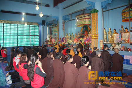 时遇石室禅院慈善功德会2013年3月份会员感恩祈福放生生日会活动在石室禅院大雄宝殿隆重举行。法师们领众念诵药师经一部、礼赞药师如来、持诵药师灌顶真言、上供等祈福仪式。整场活动在庄严而欢喜中进行。
