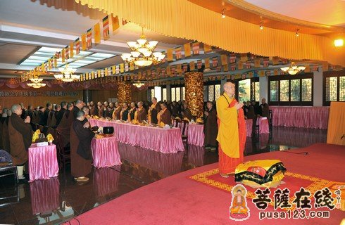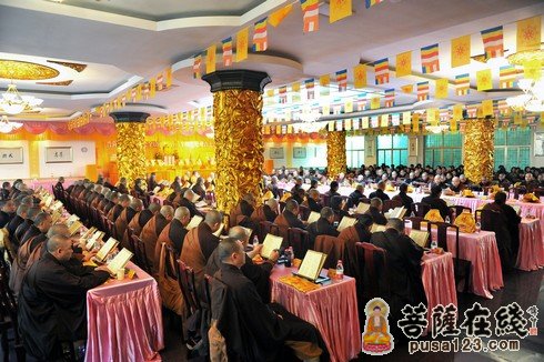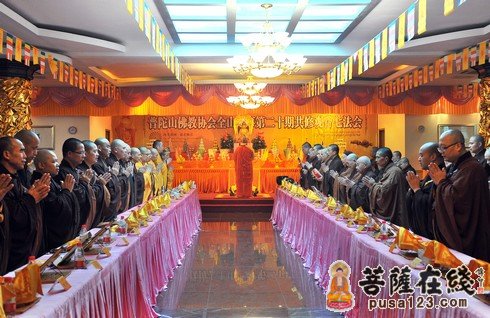 本次共修法会坛场设在普济禅寺大斋堂内。普陀山佛协会长道慈大和尚,副会长惟航法师、净旻法师、信光法师、净妙法师、智宗法师、门肃法师(兼秘书长)、会闲法师等佛协领导,全山各寺院监院等执事,以及部分居士随喜,共约300余人参加了本次法会。全山各寺院除留守值班的执事外,都能准时参加法会共修。(图文/昌其 定光)