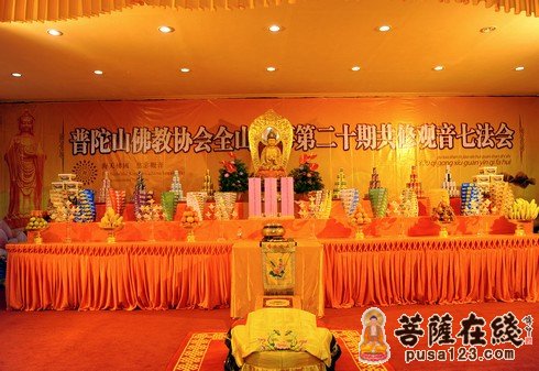 2013年3月25日(农历癸巳年二月十四),浙江普陀山佛教协会为迎接今年农历二月十九观世音菩萨圣诞纪念日,于二月十九观音香会期前举行的为期七天全山执事第二十期共修观音七法会,圆满结束。