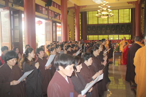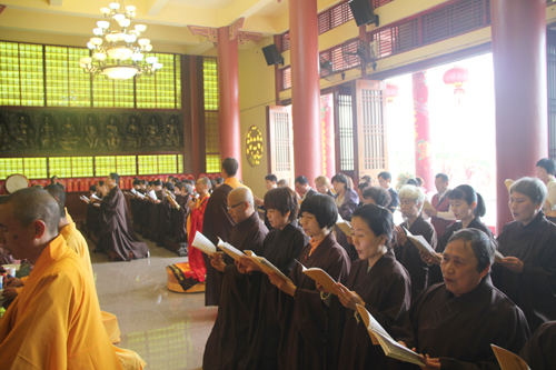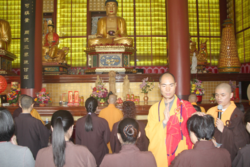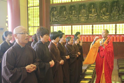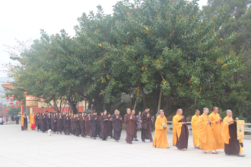 2013年3月19日上午8点30分,石室禅院举办七昼夜的“药师精进关”闭关法会正式起关,法会恭请忠明法师为主法法师,并带领全体闭关大众在大雄宝殿恭诵《药师经》一部、诵持药师咒、授八关斋戒;忠明法师为闭关大众灌顶加持,期望大家在闭关期间精进持咒、念佛,并能与药师佛相应。随后大家在“那摩药师琉璃光来”圣号声中,法师、随喜居士将闭关大众送至关房。忠明法师并一同闭关。
