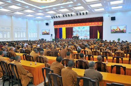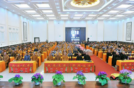 普陀山各寺院僧众、中国佛学院普陀山学院学僧以及随喜居士等近400人参加听讲
